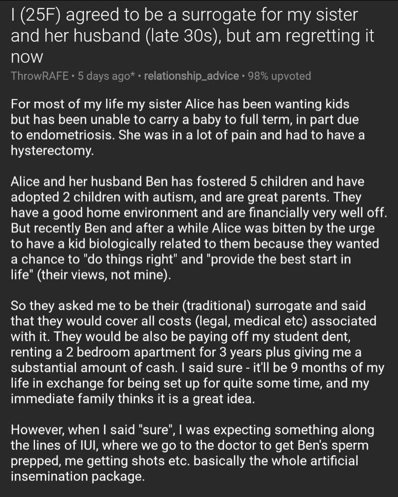 Relationships Txt On Twitter I 25f Agreed To Be A Surrogate For My Sister And Her Husband Late 30s But Am Regretting It Now Https T Co Ttdnnybqdx Https T Co Xqzejj01zi Twitter